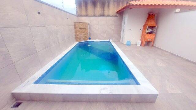 Descrições: Casa nova com dois dormitórios sendo uma suíte, sala e cozinha americana, banheiro social, área de serviços, garagem para 2 carros, área com churrasqueira e banheiro, piscina com cascata. Distante da praia 1.100 mts