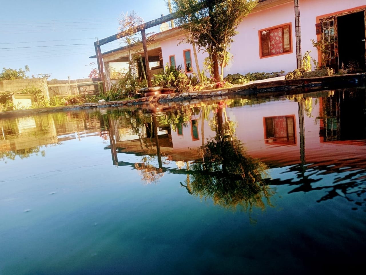 A casa é 600 metros quadrados 24 x 25 125 m de construção uma área na frente dois quartos sala banheiro cozinha lavanderia com churrascaria garagem para cinco carros.Ao lado uma piscina natural com cachoeira bomba e filtro na metragem de 16 por 7.A casa...